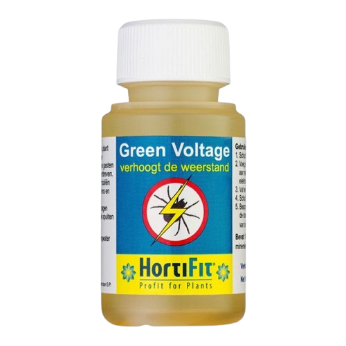 Green Voltage bevat geen chemicaliën en is volledig veilig voor plant, mens en dier. In oplossing is Green Voltage 3 dagen houdbaar. Maximaal 1 x per week spuiten net voordat de lampen uit gaan.
