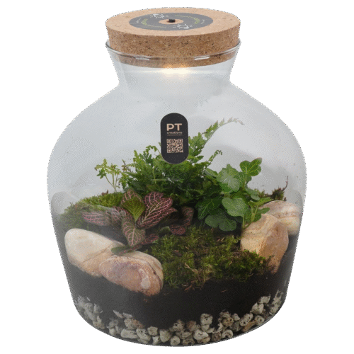 – Creatief en Uniek: Elk terrarium is een persoonlijk kunstwerk. Creëer je eigen mini-paradijs door te experimenteren met verschillende plantensoorten, stenen en mos.
